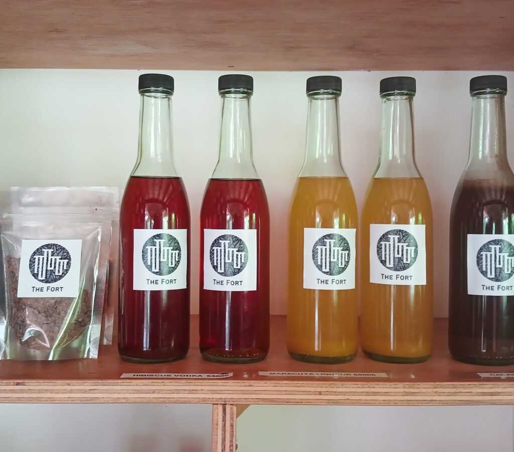 Love the cocktails at the Fort Bar? You can recreate the experience at home. We stock gift size bottles of some of our signature liqueurs for you to take home or gift to someone special. We also sell our very own cacao (and hibiscus): grown, picked, fermented and dried on hostel grounds